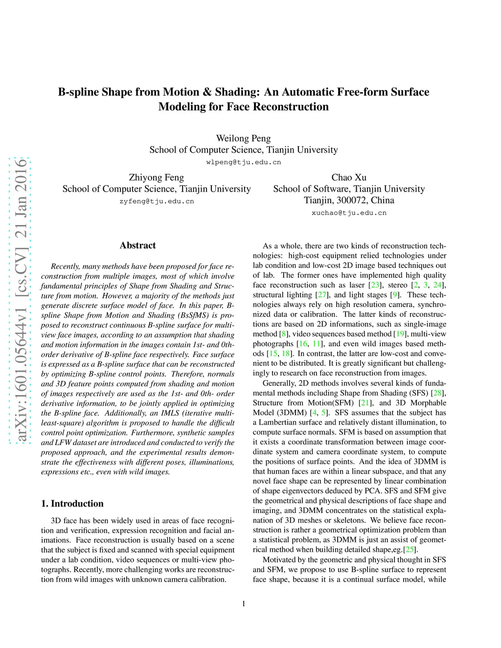 B-spline Shape from Motion & Shading: An Automatic Free-form Surface