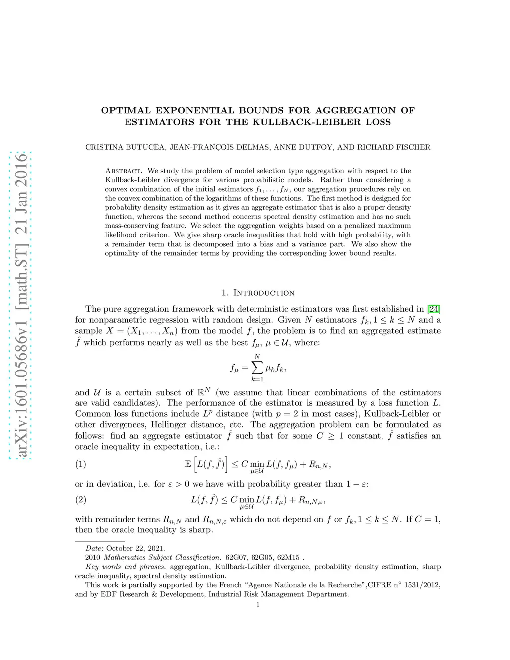Optimal exponential bounds for aggregation of estimators for the