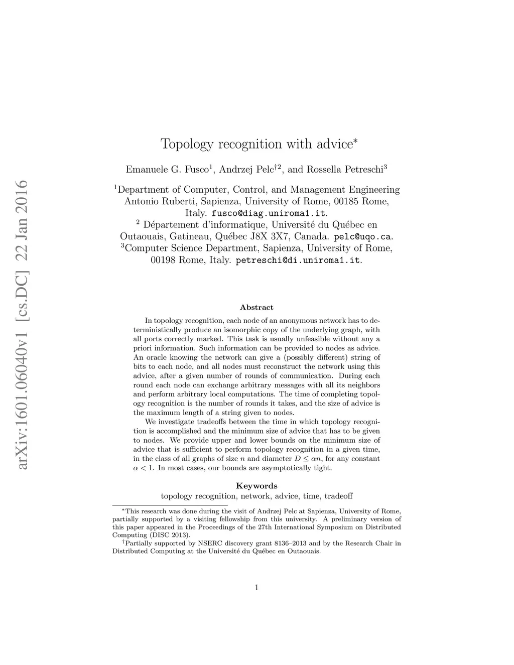 Topology recognition with advice