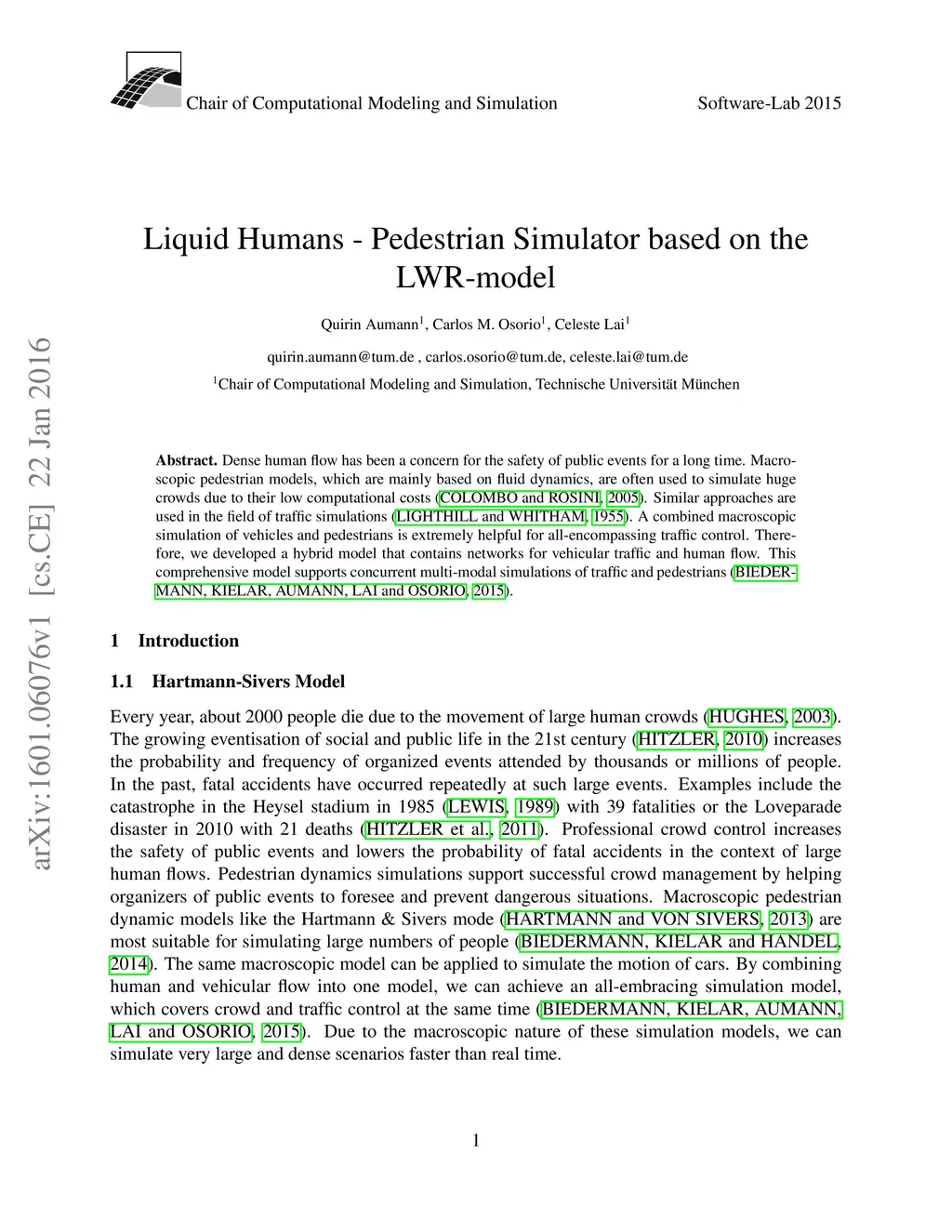 Liquid Humans - Pedestrian Simulator based on the LWR-model