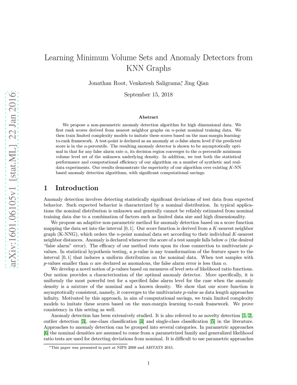 Learning Minimum Volume Sets and Anomaly Detectors from KNN Graphs