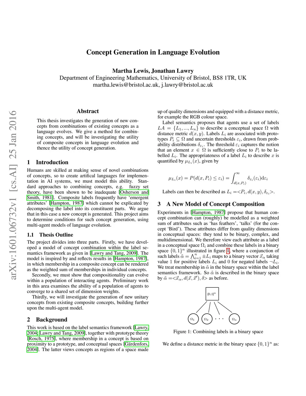 This thesis investigates the generation of new concepts from combinations of existing concepts as a language evolves. We give a method for combining concepts, and will be investigating the utility of composite concepts in language evolution and thence the utility of concept generation.
