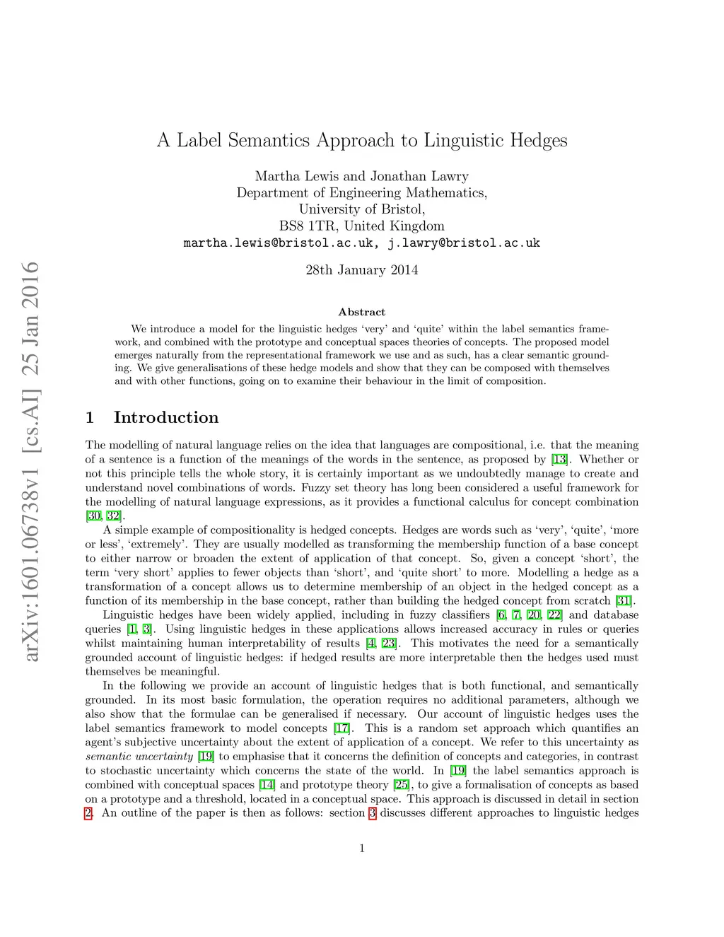 A Label Semantics Approach to Linguistic Hedges