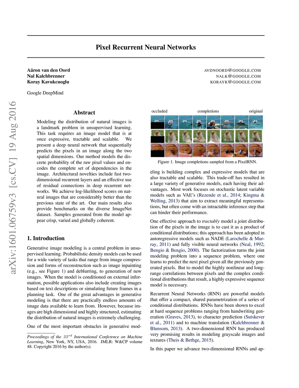 Pixel Recurrent Neural Networks