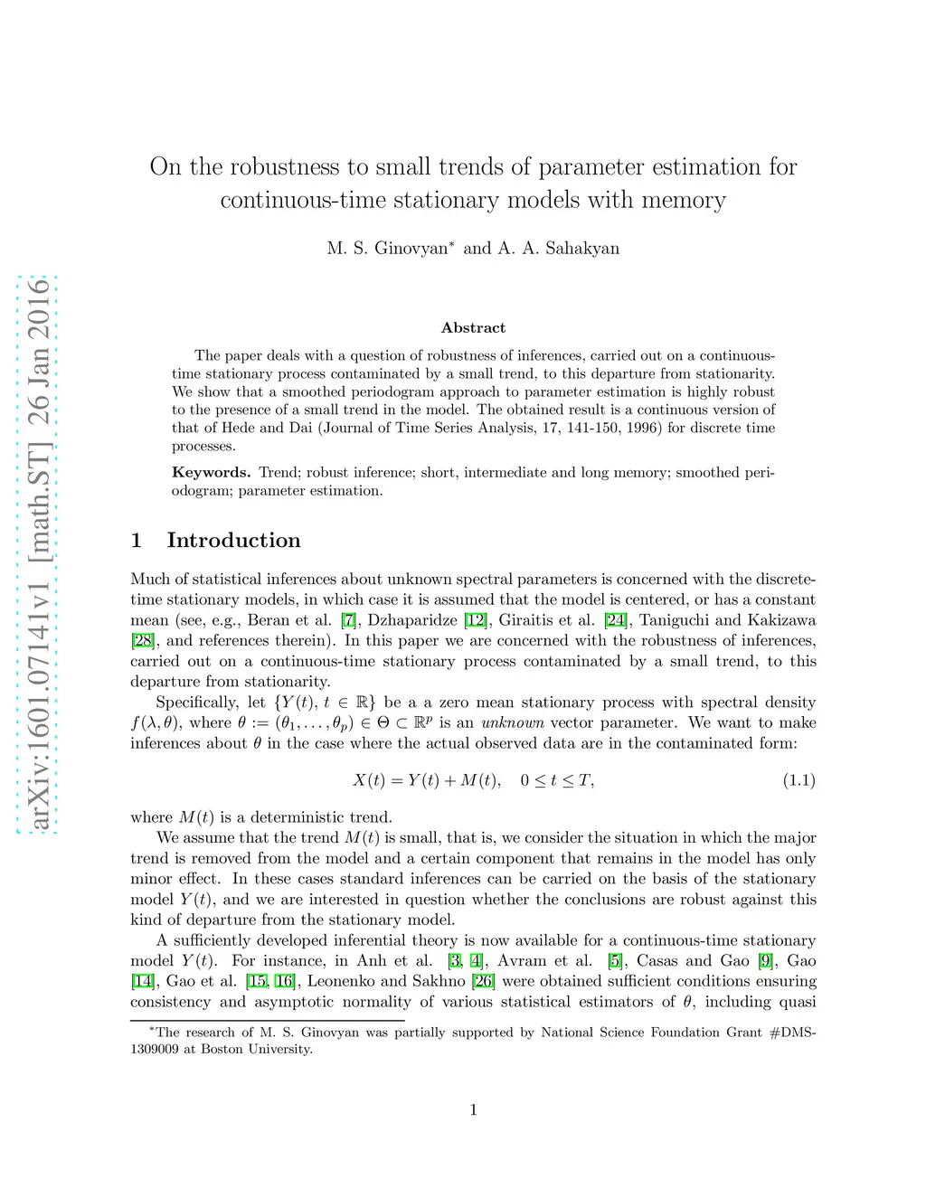 On the robustness to small trends of parameter estimation for