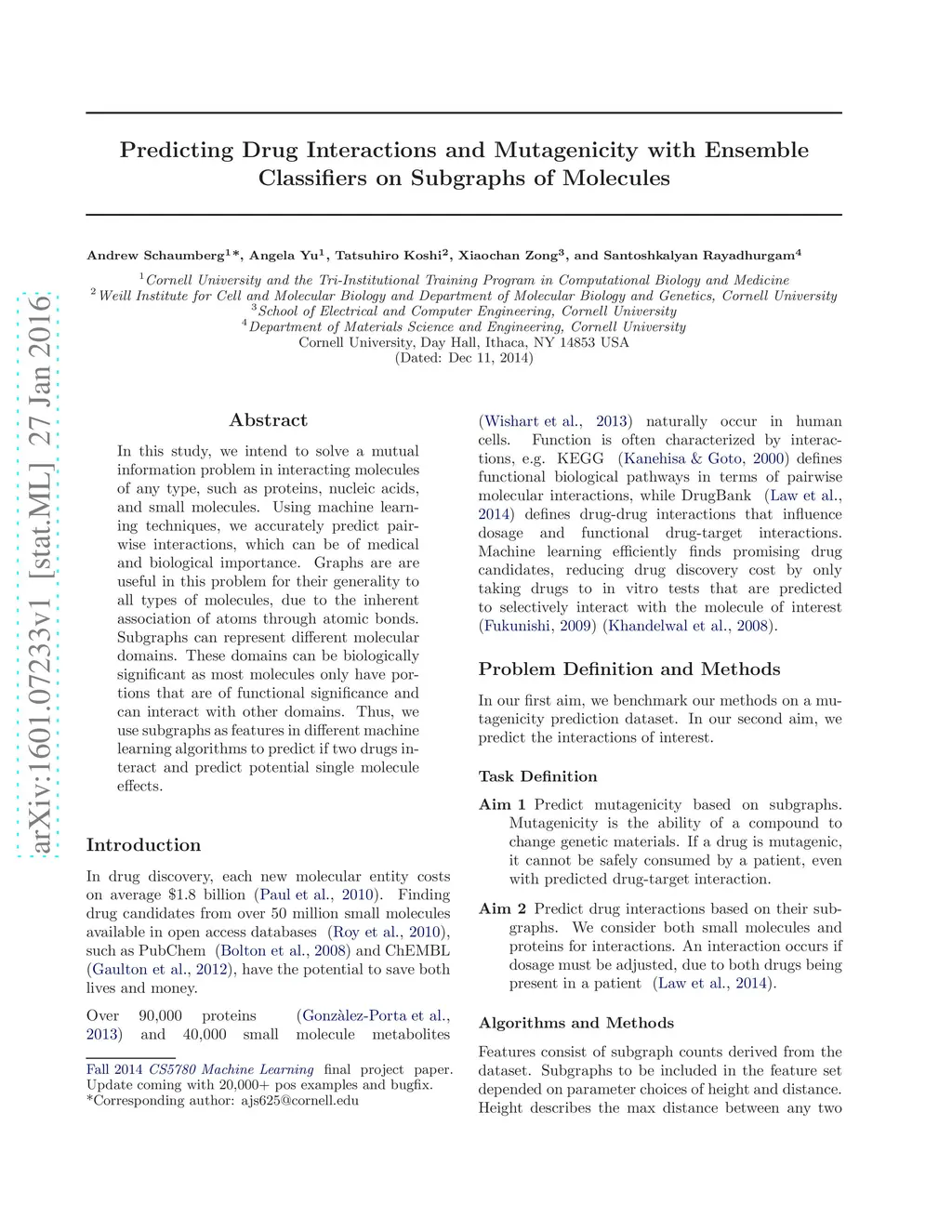 Predicting Drug Interactions and Mutagenicity with Ensemble Classifiers