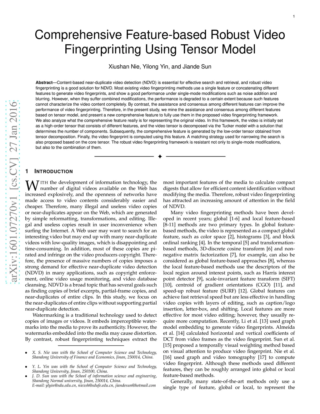 Comprehensive Feature-based Robust Video Fingerprinting Using Tensor