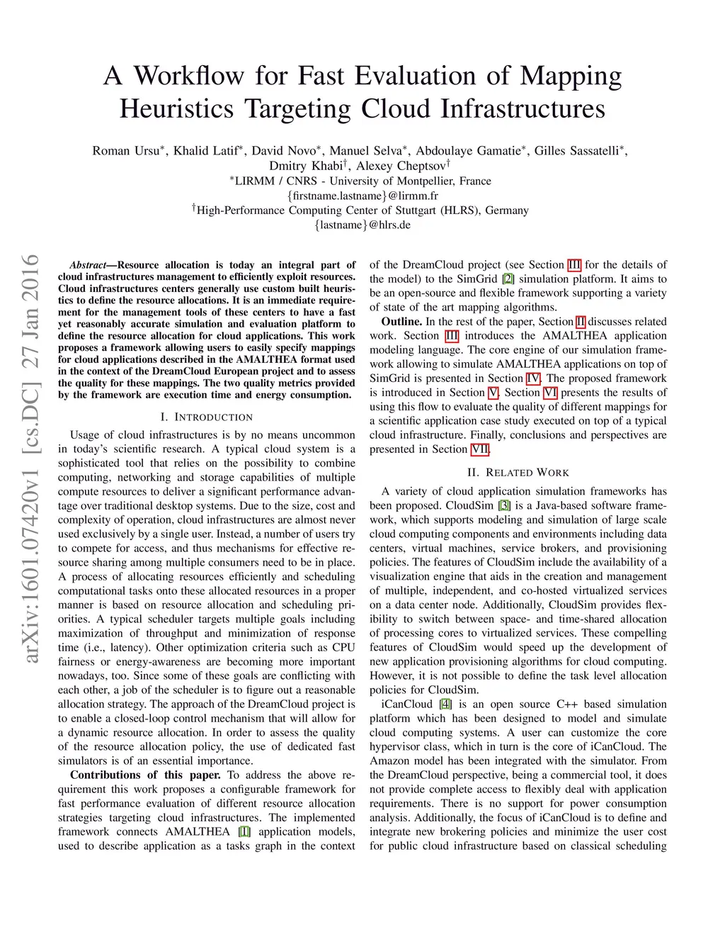 A Workflow for Fast Evaluation of Mapping Heuristics Targeting Cloud