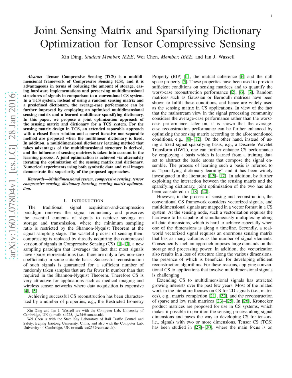Joint Sensing Matrix and Sparsifying Dictionary Optimization for Tensor