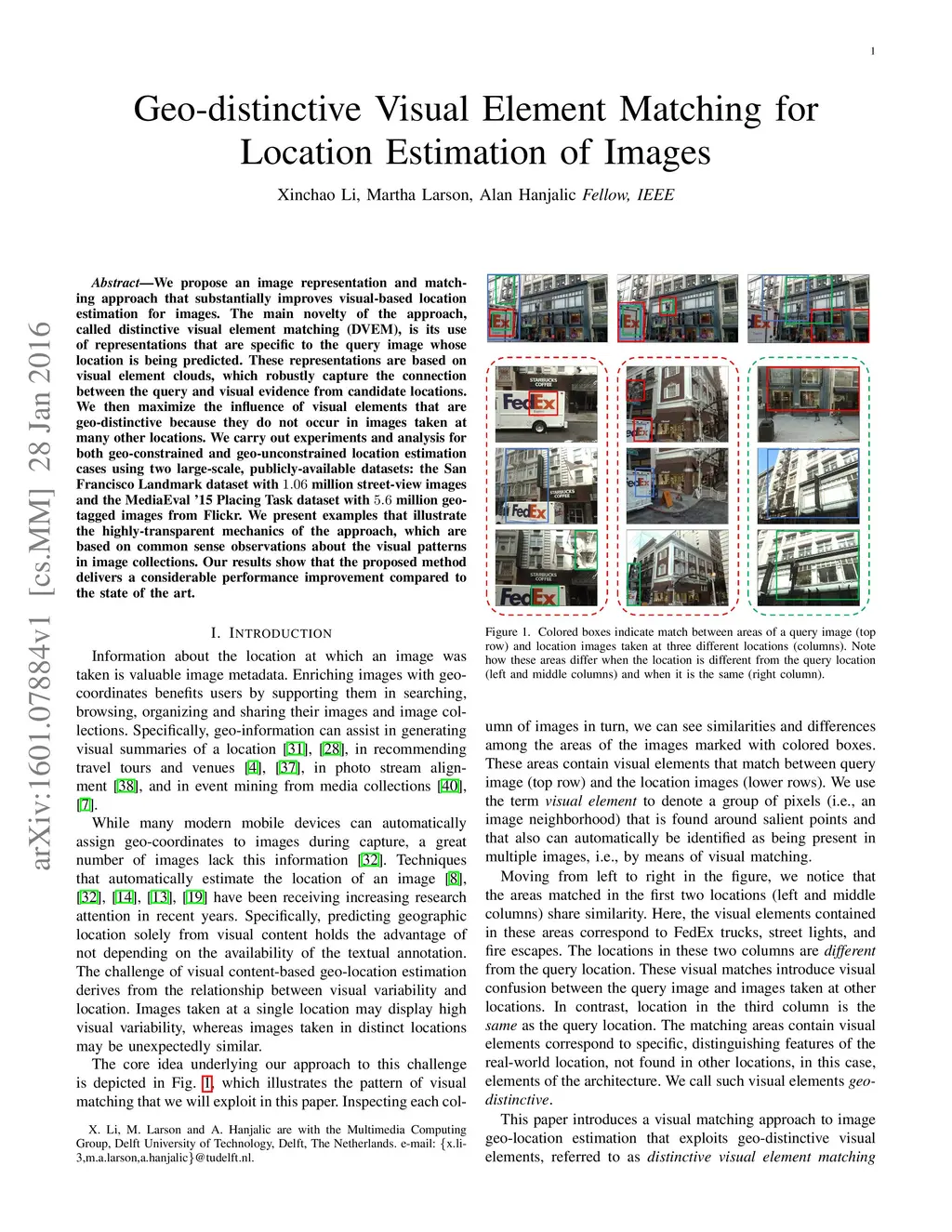 Geo-distinctive Visual Element Matching for Location Estimation of