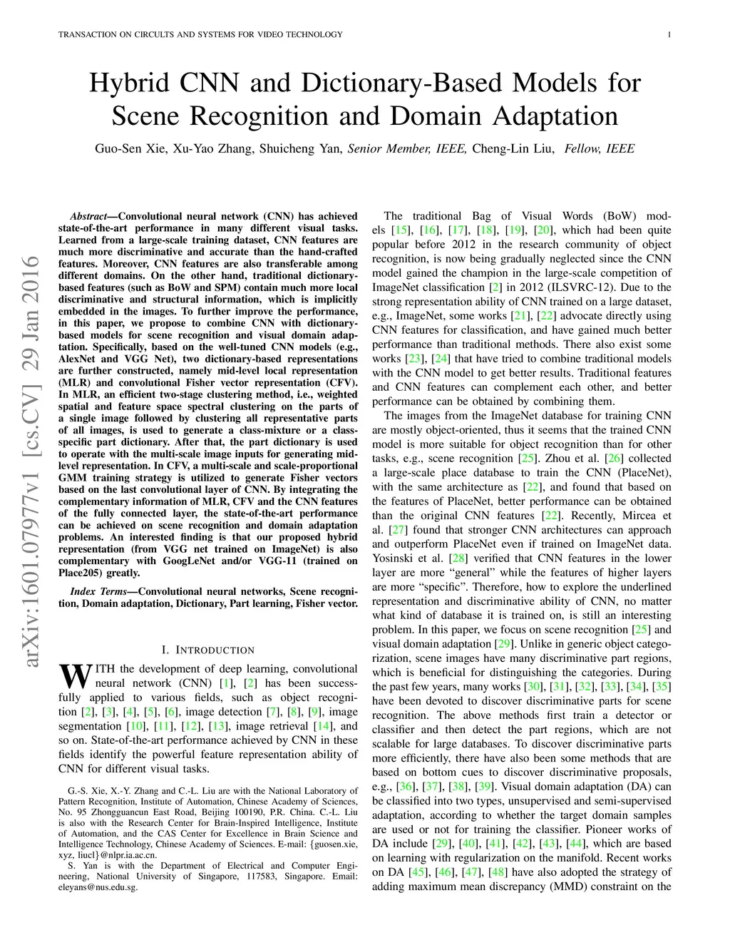 Hybrid CNN and Dictionary-Based Models for Scene Recognition and Domain