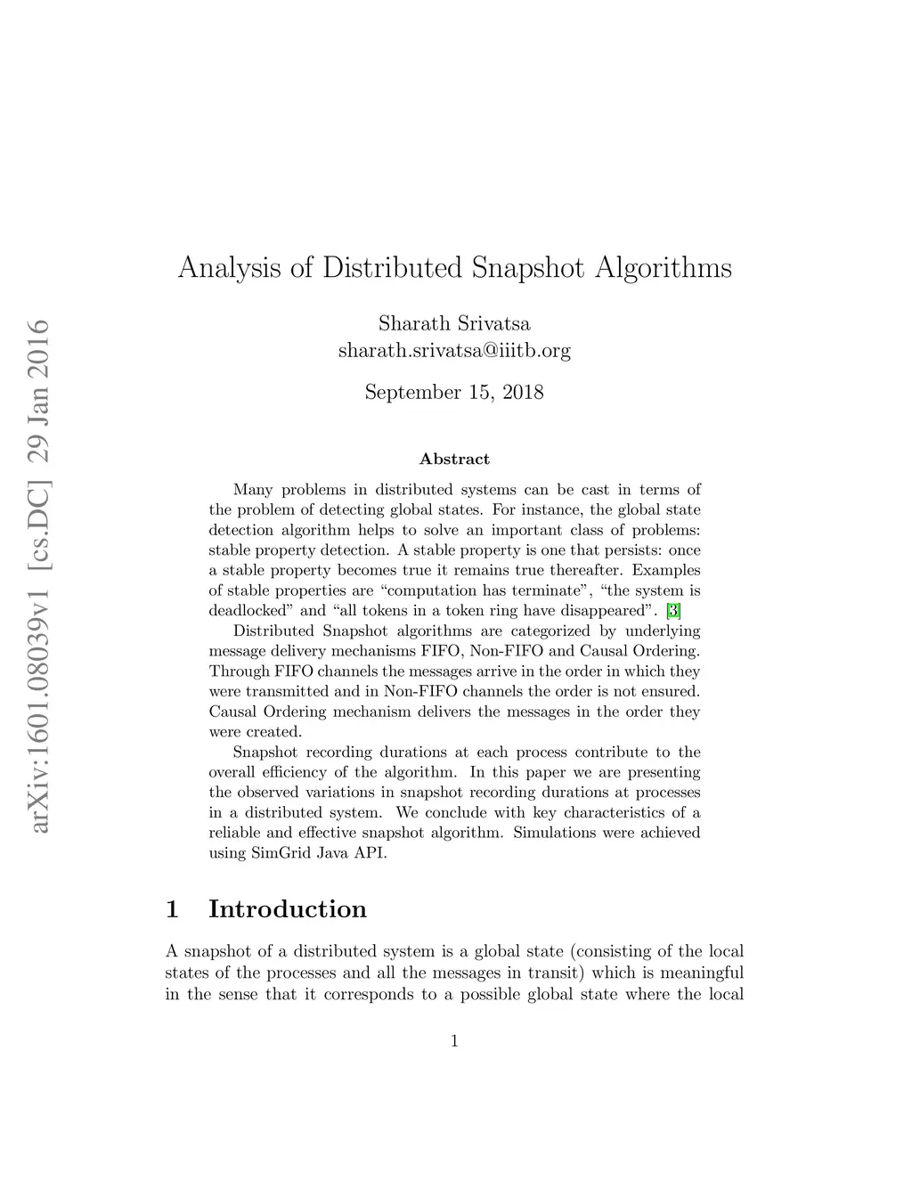 Analysis of Distributed Snapshot Algorithms