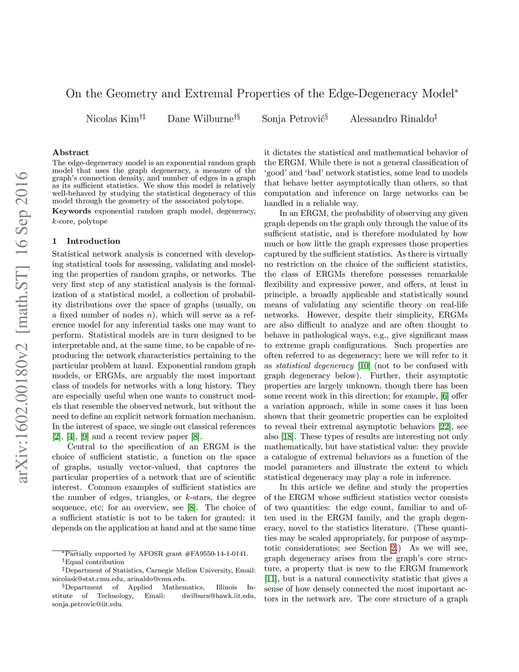 On the Geometry and Extremal Properties of the Edge-Degeneracy Model