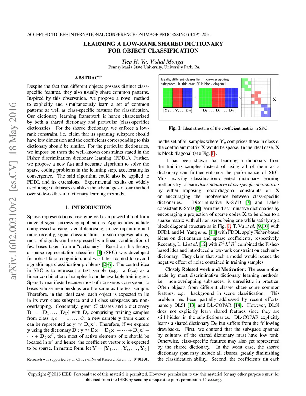 Learning a low-rank shared dictionary for object classification