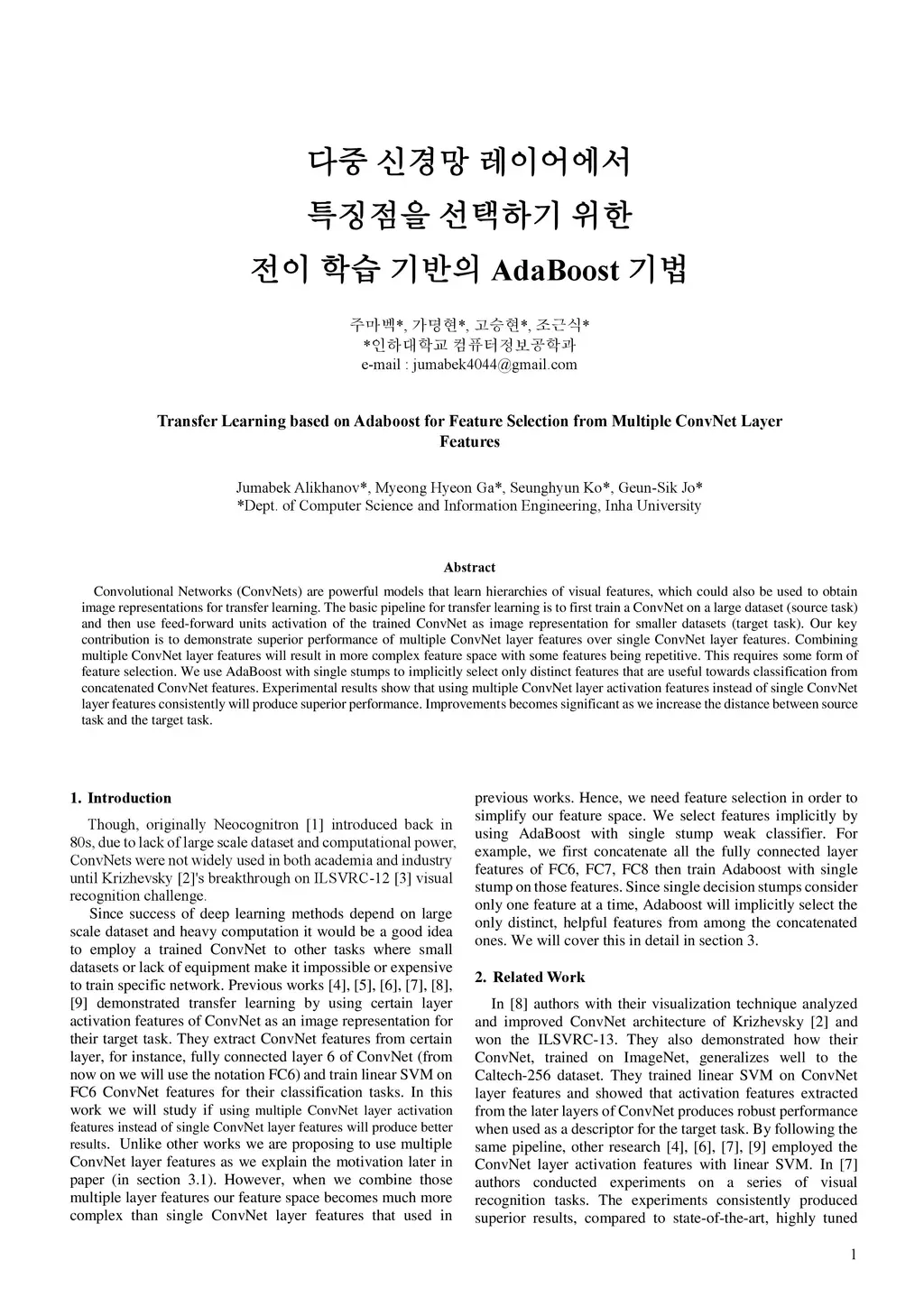 Convolutional Networks (ConvNets) are powerful models that learn hierarchies of visual features, which could also be used to obtain image representations for transfer learning. The basic pipeline for transfer learning is to first train a ConvNet on a large dataset (source task) and then use feed-forward units activation of the trained ConvNet as image representation for smaller datasets (target task). Our key contribution is to demonstrate superior performance of multiple ConvNet layer features over single ConvNet layer features. Combining multiple ConvNet layer features will result in more complex feature space with some features being repetitive. This requires some form of feature selection. We use AdaBoost with single stumps to implicitly select only distinct features that are useful towards classification from concatenated ConvNet features. Experimental results show that using multiple ConvNet layer activation features instead of single ConvNet layer features consistently will produce superior performance. Improvements becomes significant as we increase the distance between source task and the target task.