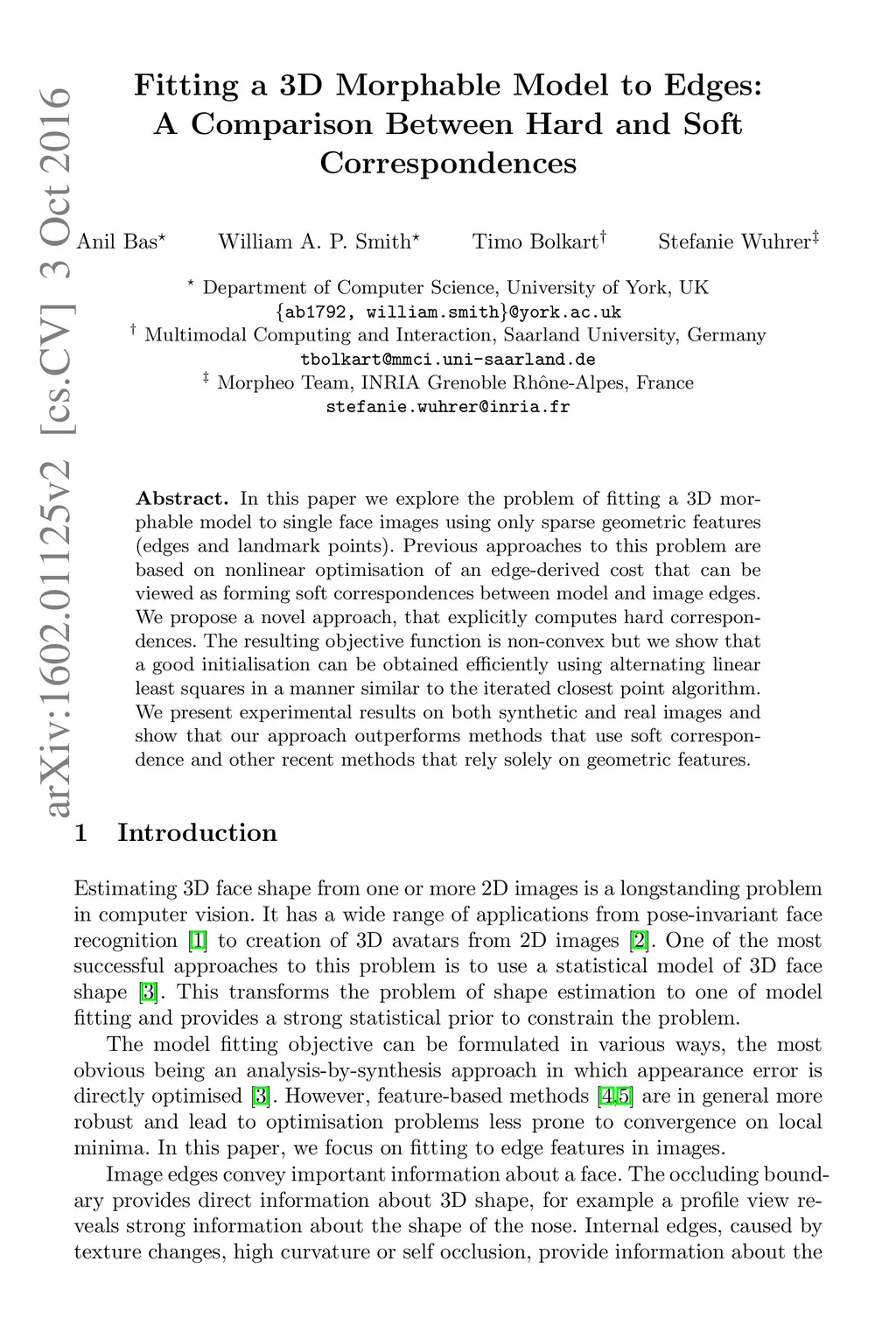 Fitting a 3D Morphable Model to Edges: A Comparison Between Hard and