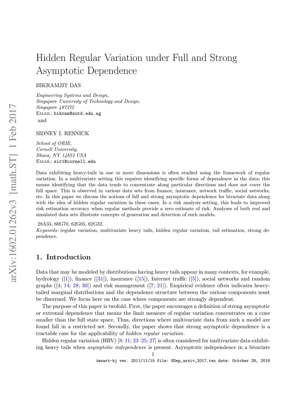 Data exhibiting heavy-tails in one or more dimensions is often studied using the framework of regular variation. In a multivariate setting this requires identifying specific forms of dependence in the data; this means identifying that the data tends to concentrate along particular directions and does not cover the full space. This is observed in various data sets from finance, insurance, network traffic, social networks, etc. In this paper we discuss the notions of full and strong asymptotic dependence for bivariate data along with the idea of hidden regular variation in these cases. In a risk analysis setting, this leads to improved risk estimation accuracy when regular methods provide a zero estimate of risk. Analyses of both real and simulated data sets illustrate concepts of generation and detection of such models.