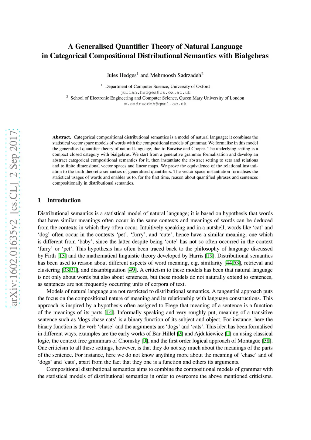 A Generalised Quantifier Theory of Natural Language in Categorical