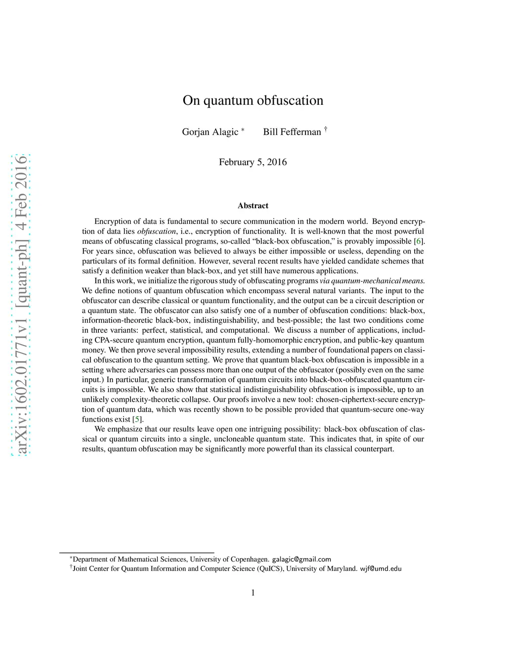 On Quantum Obfuscation