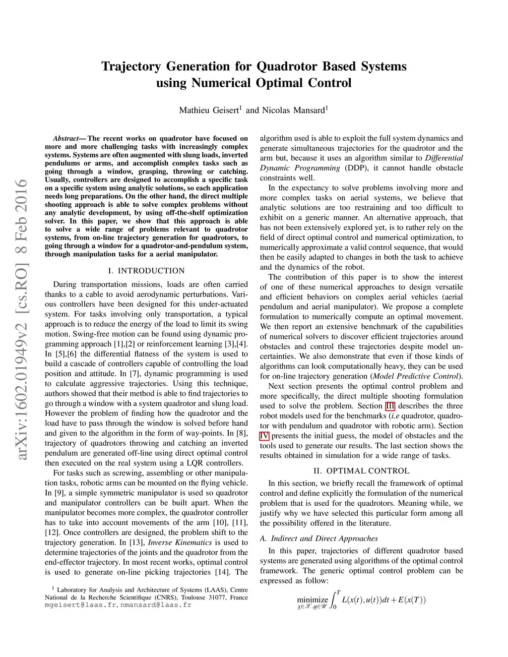 The recent works on quadrotor have focused on more and more challenging tasks on increasingly complex systems. Systems are often augmented with slung loads, inverted pendulums or arms, and accomplish complex tasks such as going through a window, grasping, throwing or catching. Usually, controllers are designed to accomplish a specific task on a specific system using analytic solutions, so each application needs long preparations. On the other hand, the direct multiple shooting approach is able to solve complex problems without any analytic development, by using on-the-shelf optimization solver. In this paper, we show that this approach is able to solve a wide range of problems relevant to quadrotor systems, from on-line trajectory generation for quadrotors, to going through a window for a quadrotor-and-pendulum system, through manipulation tasks for a aerial manipulator.