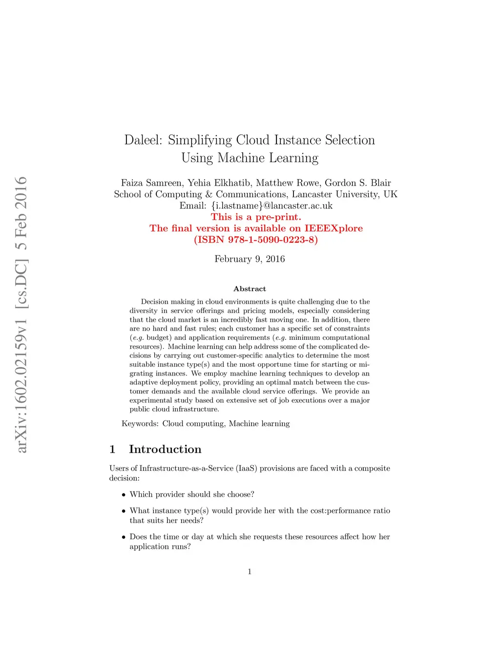 Daleel: Simplifying Cloud Instance Selection Using Machine Learning