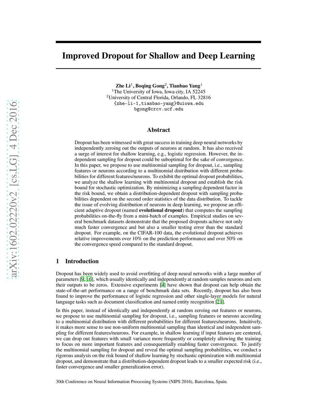 Improved Dropout for Shallow and Deep Learning