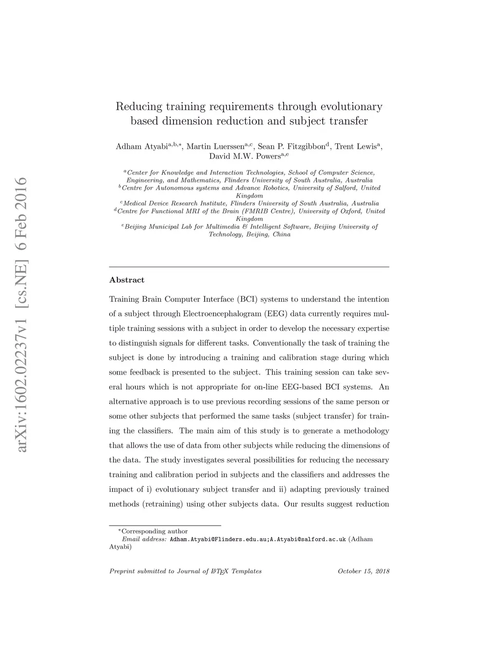 Training Brain Computer Interface (BCI) systems to understand the intention of a subject through Electroencephalogram (EEG) data currently requires multiple training sessions with a subject in order to develop the necessary expertise to distinguish signals for different tasks. Conventionally the task of training the subject is done by introducing a training and calibration stage during which some feedback is presented to the subject. This training session can take several hours which is not appropriate for on-line EEG-based BCI systems. An alternative approach is to use previous recording sessions of the same person or some other subjects that performed the same tasks (subject transfer) for training the classifiers. The main aim of this study is to generate a methodology that allows the use of data from other subjects while reducing the dimensions of the data. The study investigates several possibilities for reducing the necessary training and calibration period in subjects and the classifiers and addresses the impact of i) evolutionary subject transfer and ii) adapting previously trained methods (retraining) using other subjects data. Our results suggest reduction to 40% of target subject data is sufficient for training the classifier. Our results also indicate the superiority of the approaches that incorporated evolutionary subject transfer and highlights the feasibility of adapting a system trained on other subjects.