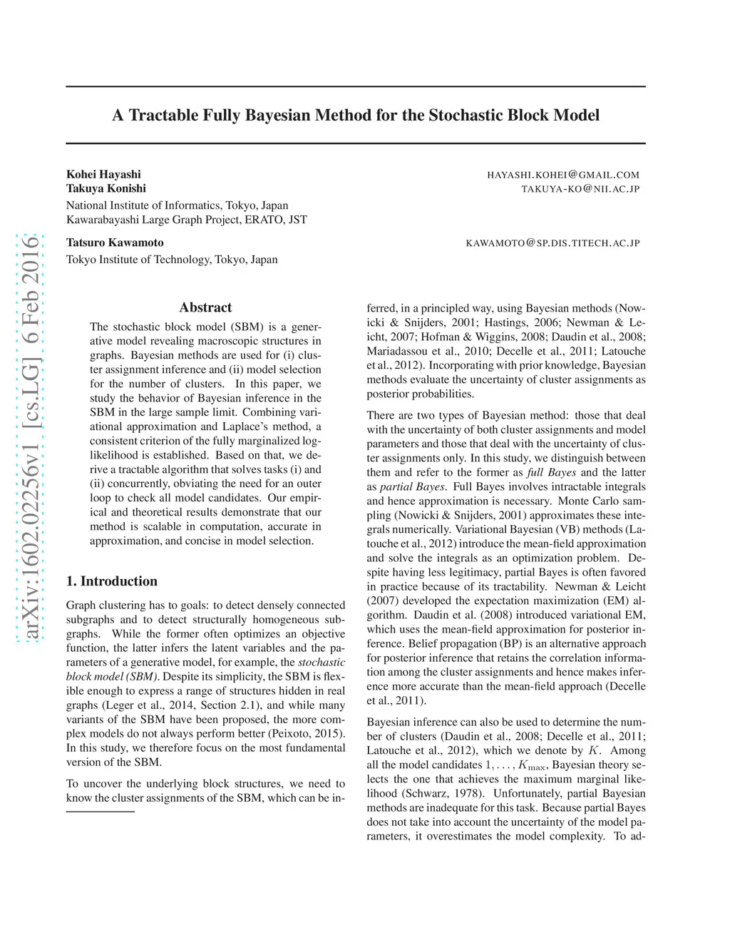 A Tractable Fully Bayesian Method for the Stochastic Block Model
