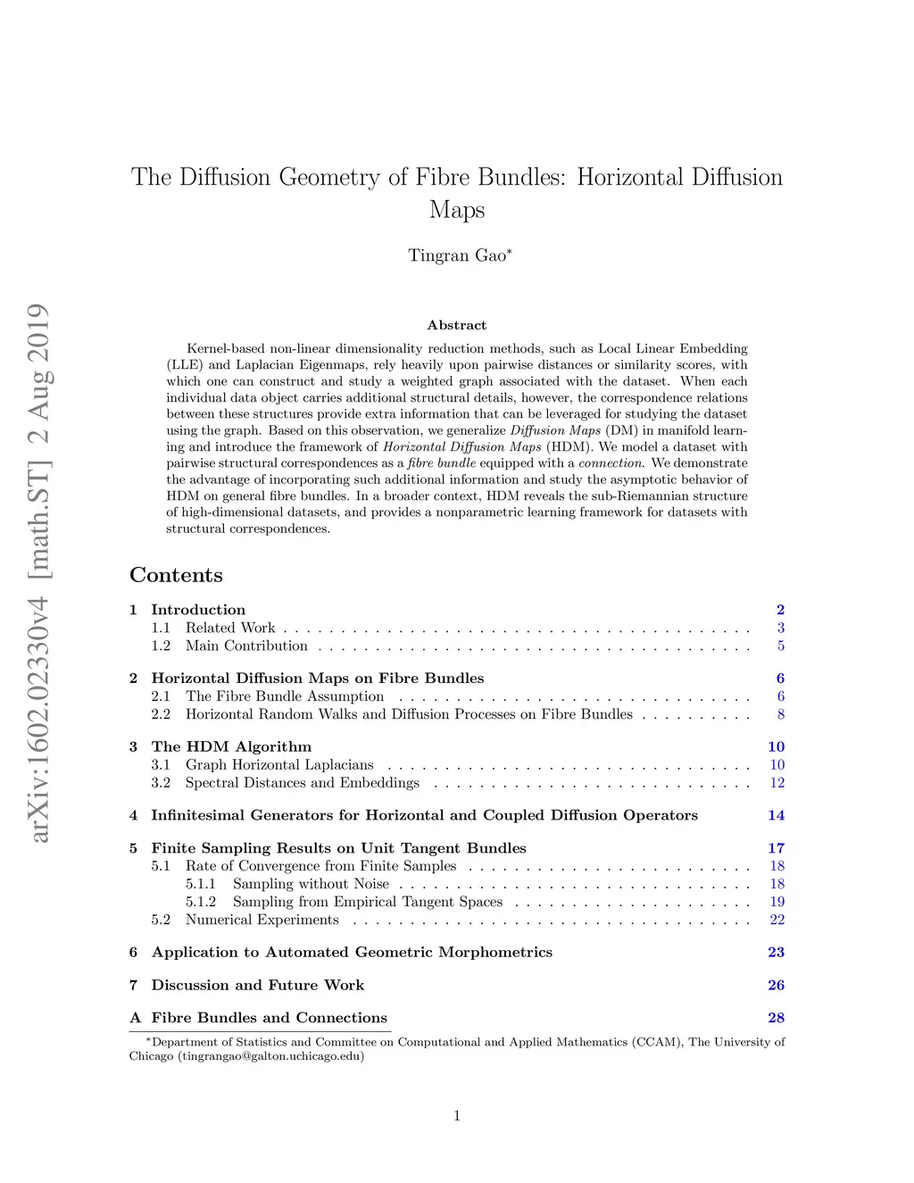 Kernel-based non-linear dimensionality reduction methods, such as Local Linear Embedding (LLE) and Laplacian Eigenmaps, rely heavily upon pairwise distances or similarity scores, with which one can construct and study a weighted graph associated with the dataset. When each individual data object carries additional structural details, however, the correspondence relations between these structures provide extra information that can be leveraged for studying the dataset using the graph. Based on this observation, we generalize Diffusion Maps (DM) in manifold learning and introduce the framework of Horizontal Diffusion Maps (HDM). We model a dataset with pairwise structural correspondences as a fibre bundle equipped with a connection. We demonstrate the advantage of incorporating such additional information and study the asymptotic behavior of HDM on general fibre bundles. In a broader context, HDM reveals the sub-Riemannian structure of high-dimensional datasets, and provides a nonparametric learning framework for datasets with structural correspondences.