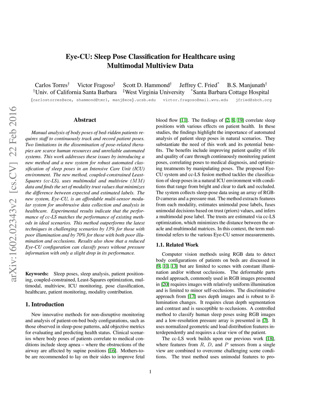 Eye-CU: Sleep Pose Classification for Healthcare using Multimodal