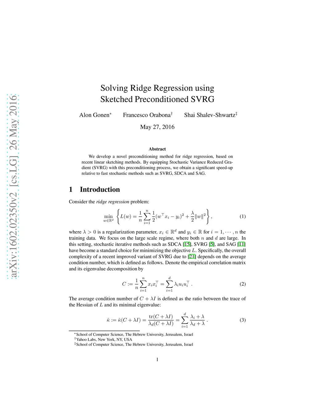 Solving Ridge Regression using Sketched Preconditioned SVRG