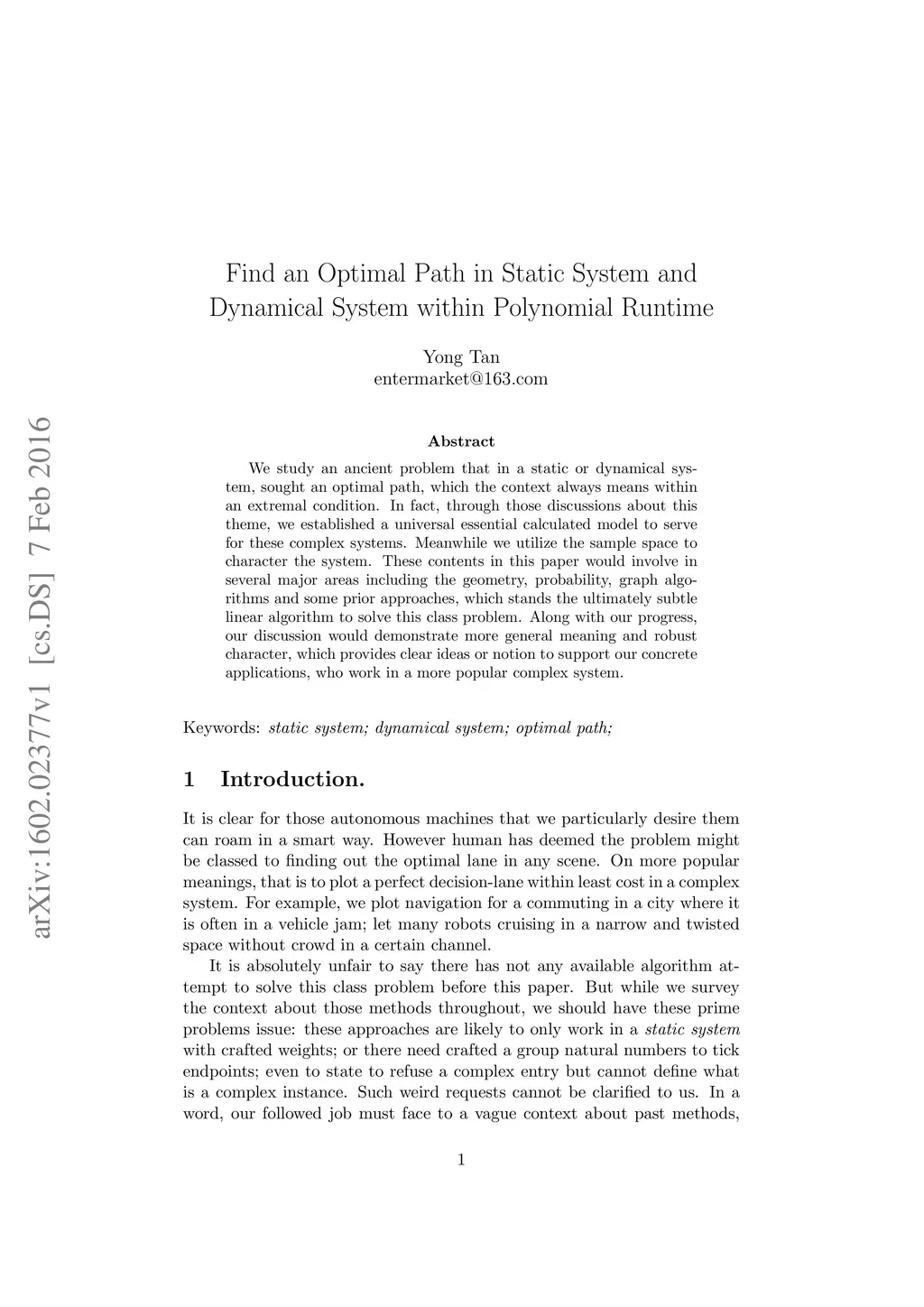 We study an ancient problem that in a static or dynamical system, sought an optimal path, which the context always means within an extremal condition. In fact, through those discussions about this theme, we established a universal essential calculated model to serve for these complex systems. Meanwhile we utilize the sample space to character the system. These contents in this paper would involve in several major areas including the geometry, probability, graph algorithms and some prior approaches, which stands the ultimately subtle linear algorithm to solve this class problem. Along with our progress, our discussion would demonstrate more general meaning and robust character, which provides clear ideas or notion to support our concrete applications, who work in a more popular complex system.