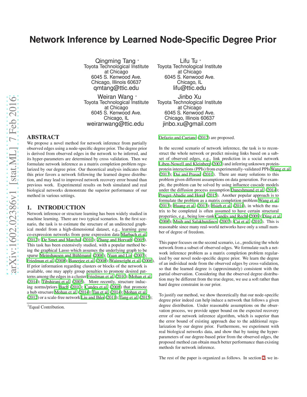 We propose a novel method for network inference from partially observed edges using a node-specific degree prior. The degree prior is derived from observed edges in the network to be inferred, and its hyper-parameters are determined by cross validation. Then we formulate network inference as a matrix completion problem regularized by our degree prior. Our theoretical analysis indicates that this prior favors a network following the learned degree distribution, and may lead to improved network recovery error bound than previous work. Experimental results on both simulated and real biological networks demonstrate the superior performance of our method in various settings.