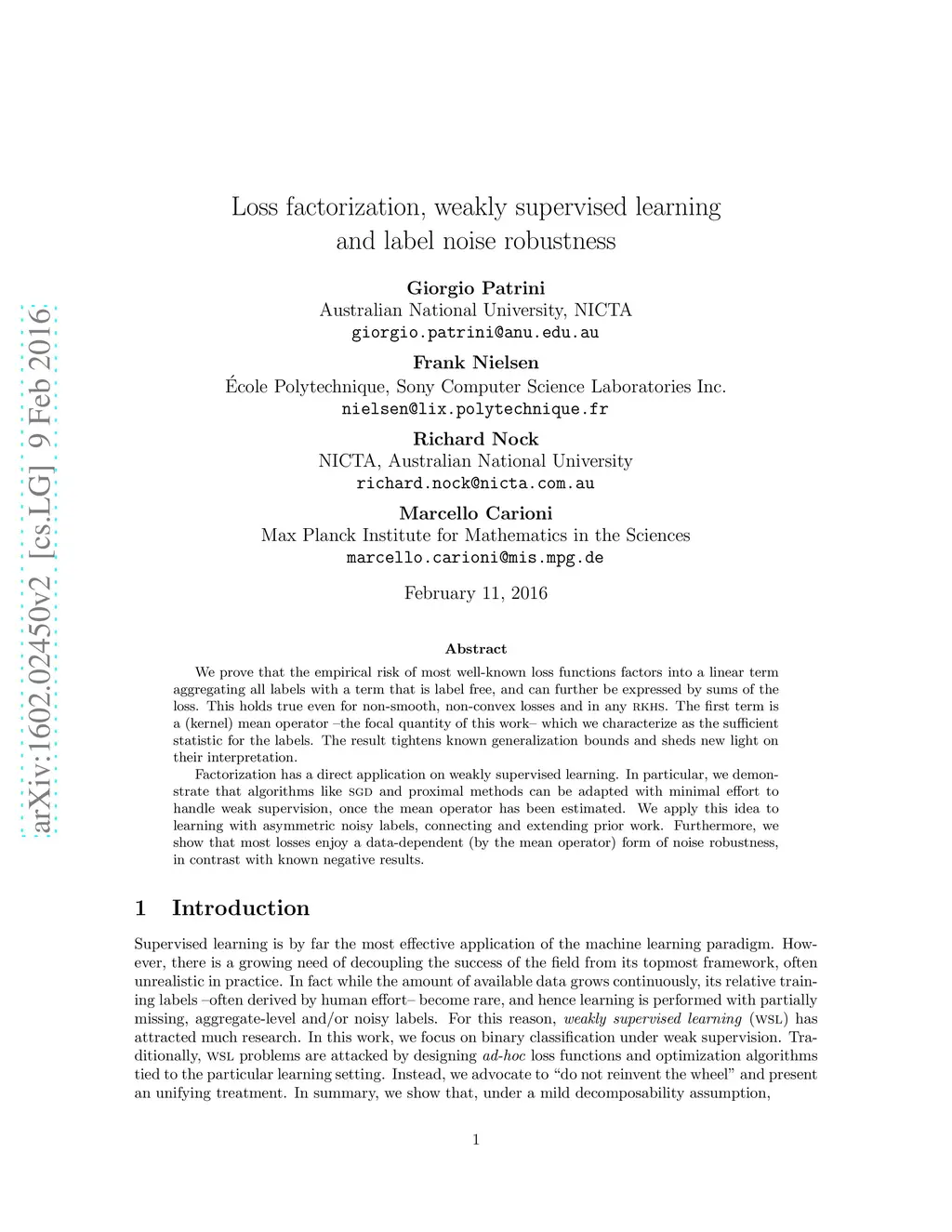We prove that the empirical risk of most well-known loss functions factors into a linear term aggregating all labels with a term that is label free, and can further be expressed by sums of the loss. This holds true even for non-smooth, non-convex losses and in any RKHS. The first term is a (kernel) mean operator --the focal quantity of this work-- which we characterize as the sufficient statistic for the labels. The result tightens known generalization bounds and sheds new light on their interpretation. Factorization has a direct application on weakly supervised learning. In particular, we demonstrate that algorithms like SGD and proximal methods can be adapted with minimal effort to handle weak supervision, once the mean operator has been estimated. We apply this idea to learning with asymmetric noisy labels, connecting and extending prior work. Furthermore, we show that most losses enjoy a data-dependent (by the mean operator) form of noise robustness, in contrast with known negative results.