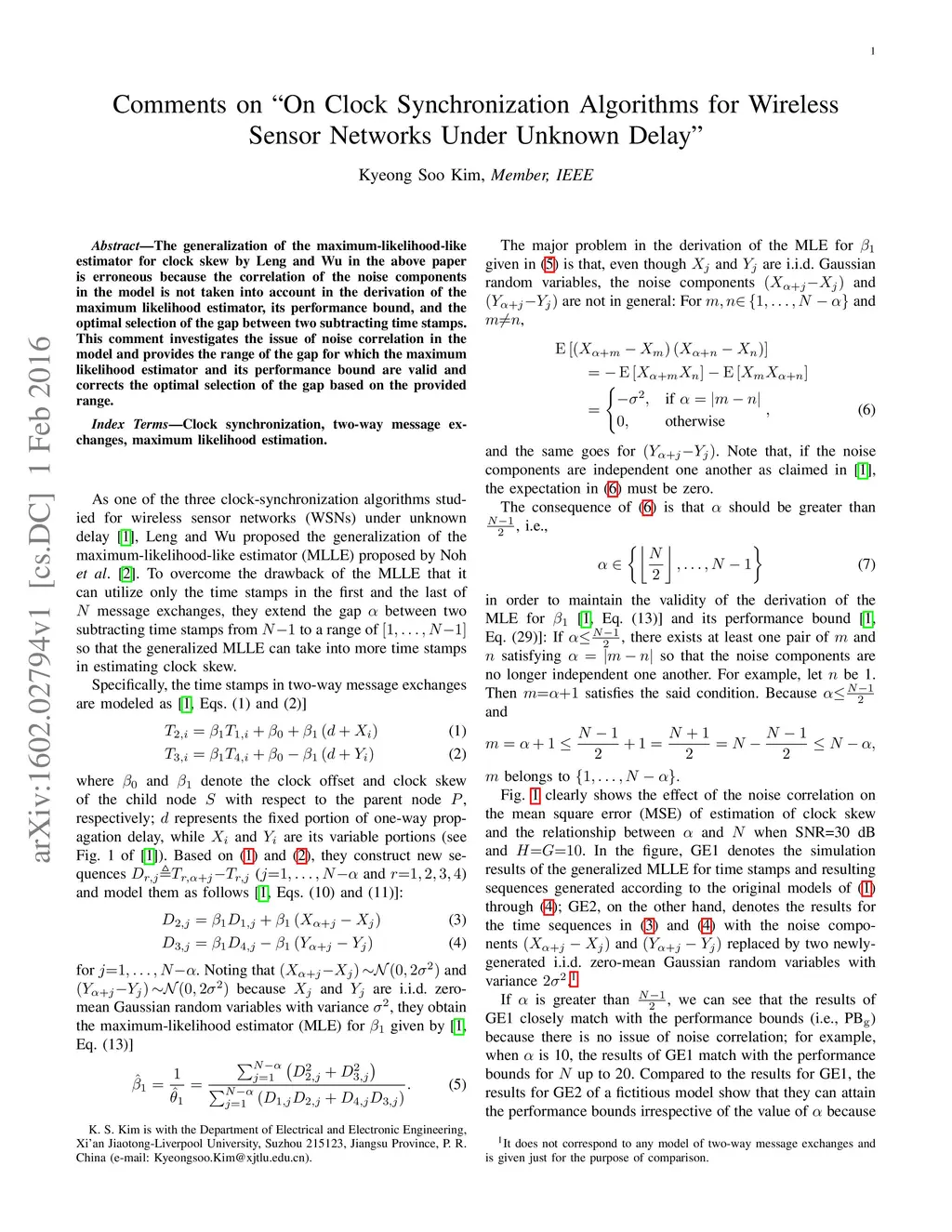 Comments on "On Clock Synchronization Algorithms for Wireless Sensor