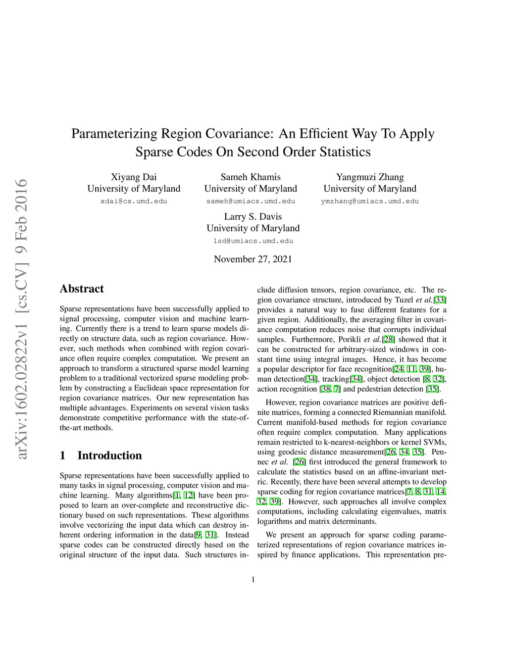 Parameterizing Region Covariance: An Efficient Way To Apply Sparse Codes