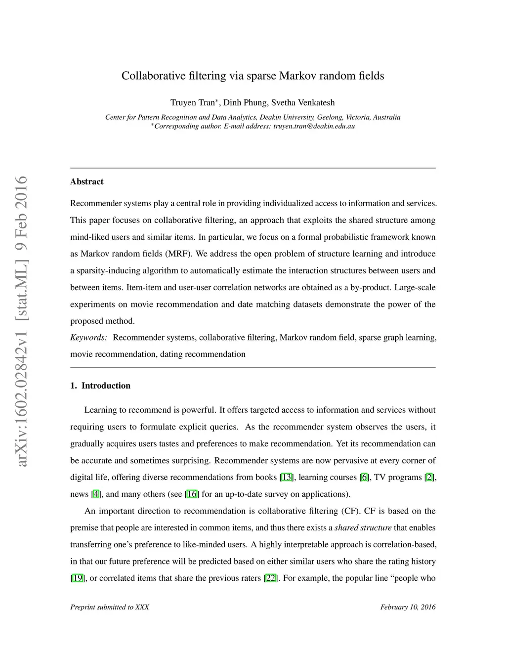 Collaborative filtering via sparse Markov random fields
