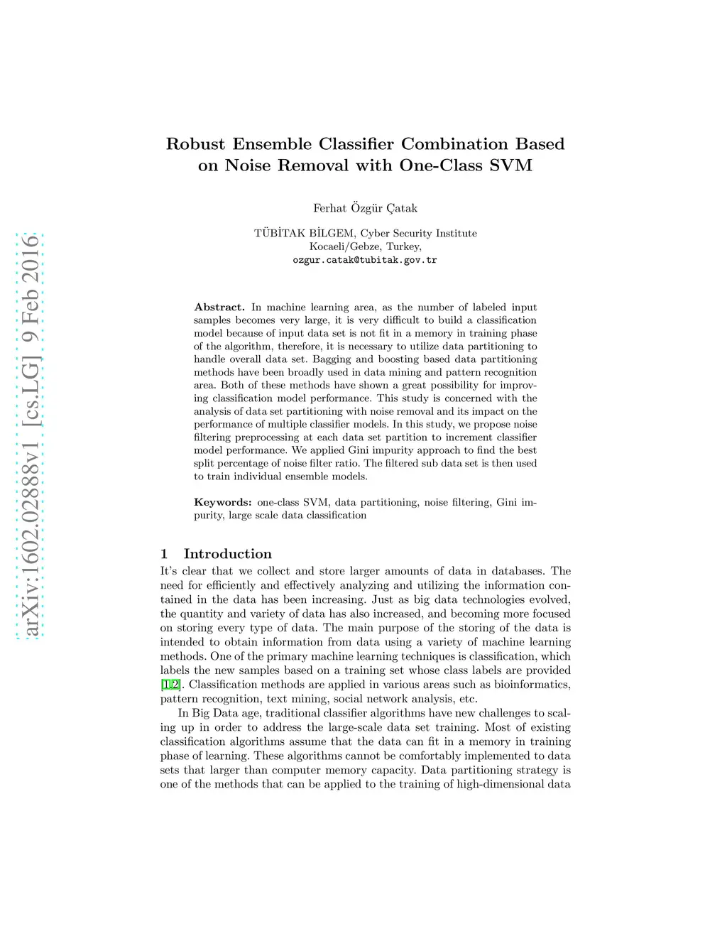 In machine learning area, as the number of labeled input samples becomes very large, it is very difficult to build a classification model because of input data set is not fit in a memory in training phase of the algorithm, therefore, it is necessary to utilize data partitioning to handle overall data set. Bagging and boosting based data partitioning methods have been broadly used in data mining and pattern recognition area. Both of these methods have shown a great possibility for improving classification model performance. This study is concerned with the analysis of data set partitioning with noise removal and its impact on the performance of multiple classifier models. In this study, we propose noise filtering preprocessing at each data set partition to increment classifier model performance. We applied Gini impurity approach to find the best split percentage of noise filter ratio. The filtered sub data set is then used to train individual ensemble models.