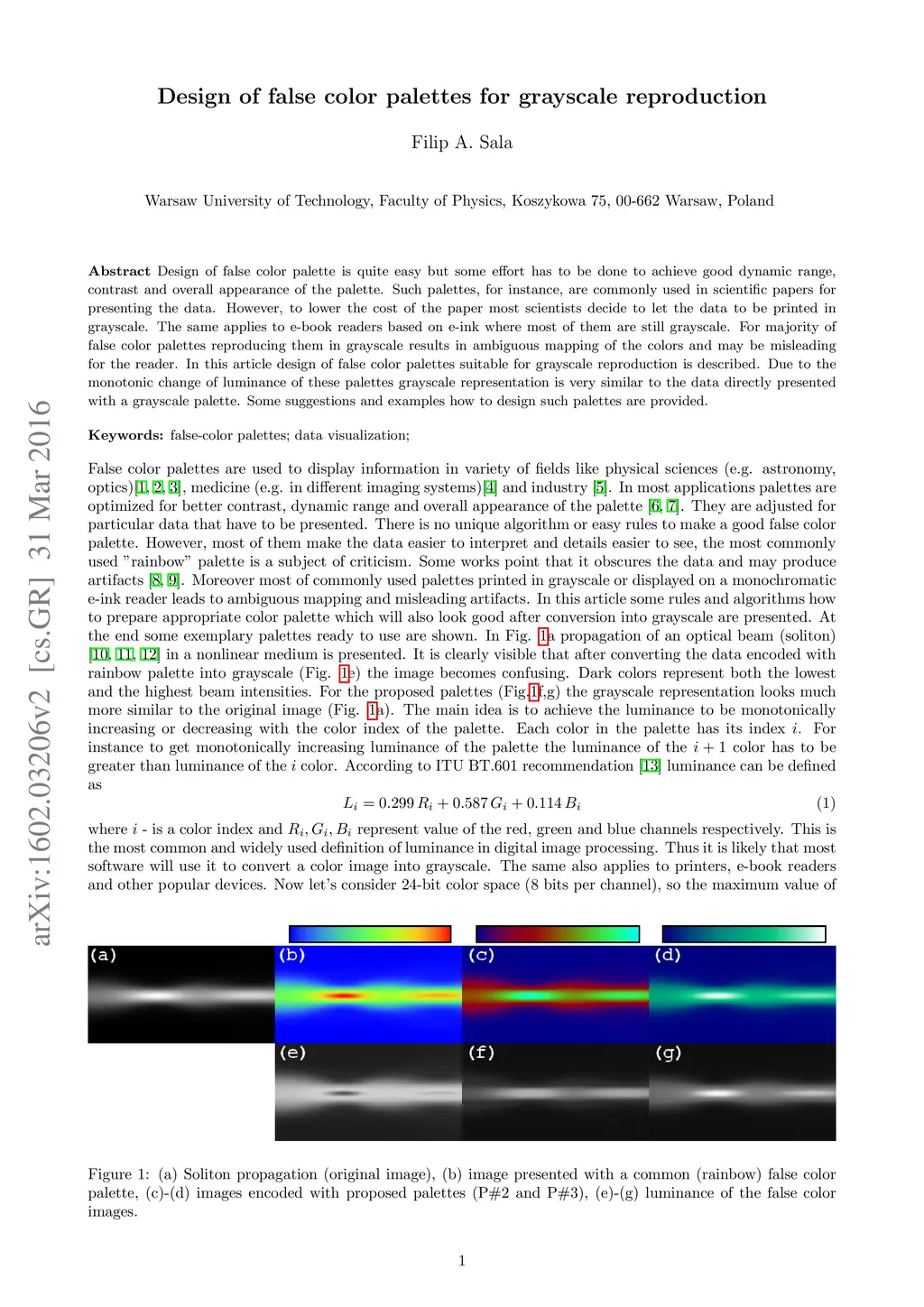 Design of false color palette is quite easy but some effort has to be done to achieve good dynamic range, contrast and overall appearance of the palette. Such palettes, for instance, are commonly used in scientific papers for presenting the data. However, to lower the cost of the paper most scientists decide to let the data to be printed in grayscale. The same applies to e-book readers based on e-ink where most of them are still grayscale. For majority of false color palettes reproducing them in grayscale results in ambiguous mapping of the colors and may be misleading for the reader. In this article design of false color palettes suitable for grayscale reproduction is described. Due to the monotonic change of luminance of these palettes grayscale representation is very similar to the data directly presented with a grayscale palette. Some suggestions and examples how to design such palettes are provided.