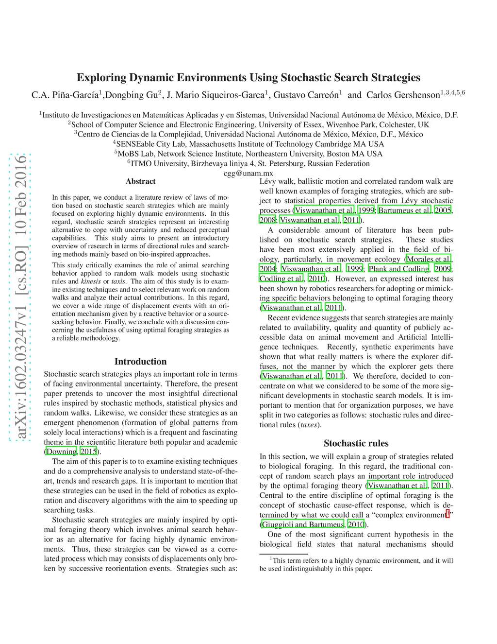 Exploring Dynamic Environments Using Stochastic Search Strategies