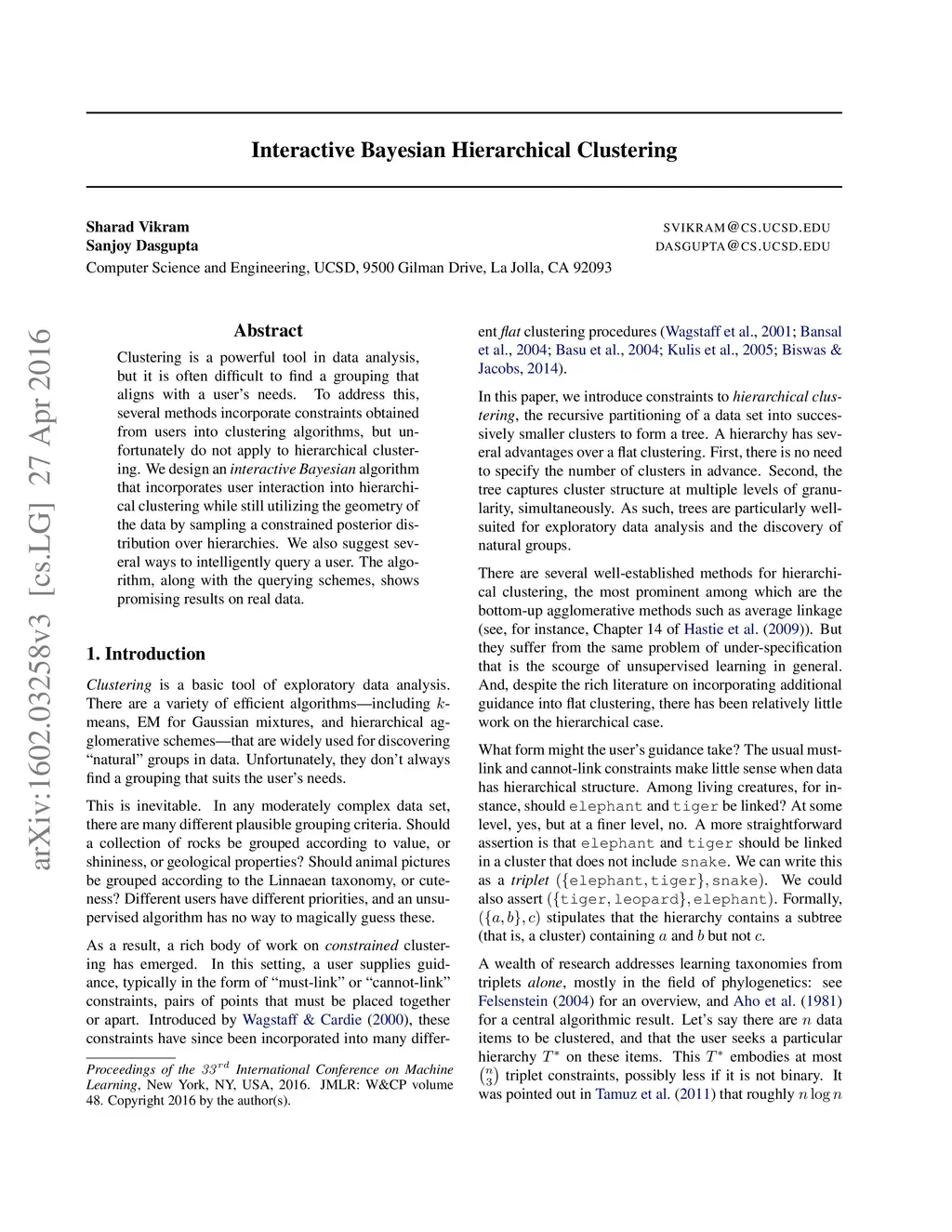 Clustering is a powerful tool in data analysis, but it is often difficult to find a grouping that aligns with a user's needs. To address this, several methods incorporate constraints obtained from users into clustering algorithms, but unfortunately do not apply to hierarchical clustering. We design an interactive Bayesian algorithm that incorporates user interaction into hierarchical clustering while still utilizing the geometry of the data by sampling a constrained posterior distribution over hierarchies. We also suggest several ways to intelligently query a user. The algorithm, along with the querying schemes, shows promising results on real data.