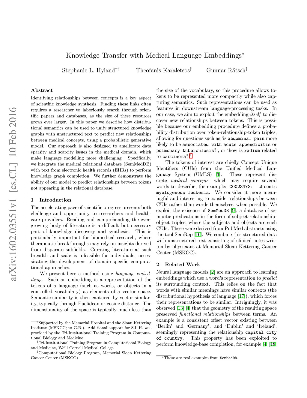 Knowledge Transfer with Medical Language Embeddings