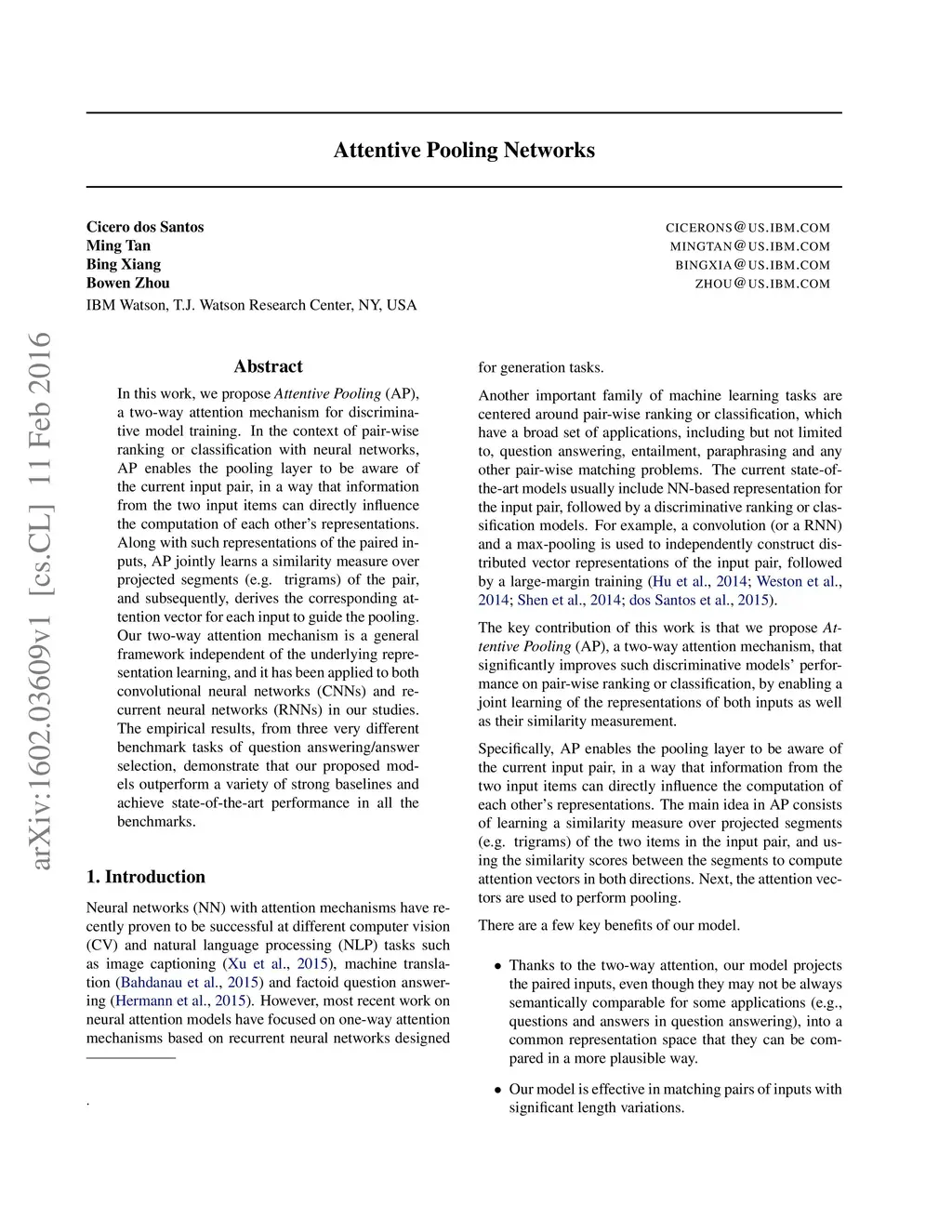 Attentive Pooling Networks