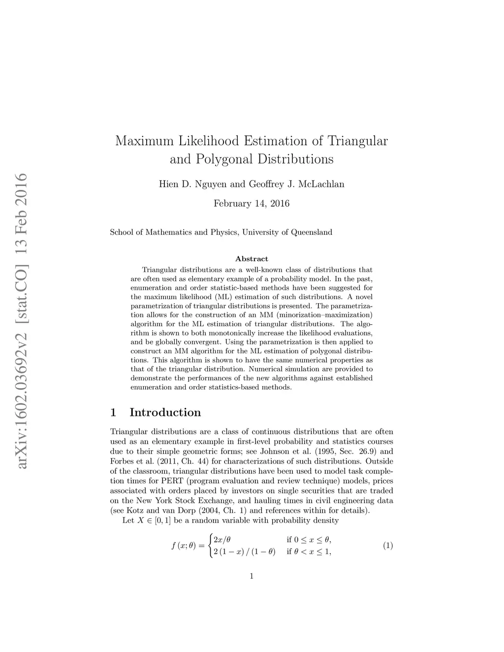 Maximum Likelihood Estimation of Triangular and Polygonal Distributions