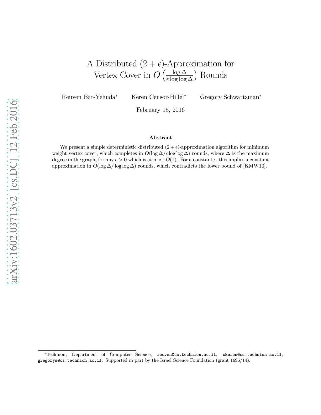 A Distributed -Approximation for Vertex Cover in