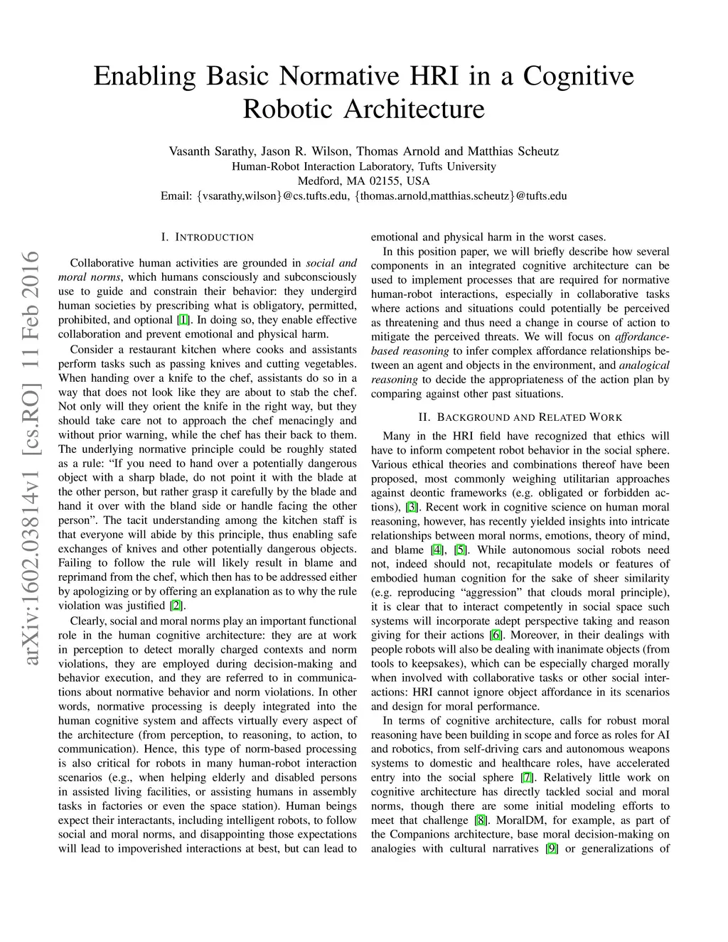 Enabling Basic Normative HRI in a Cognitive Robotic Architecture