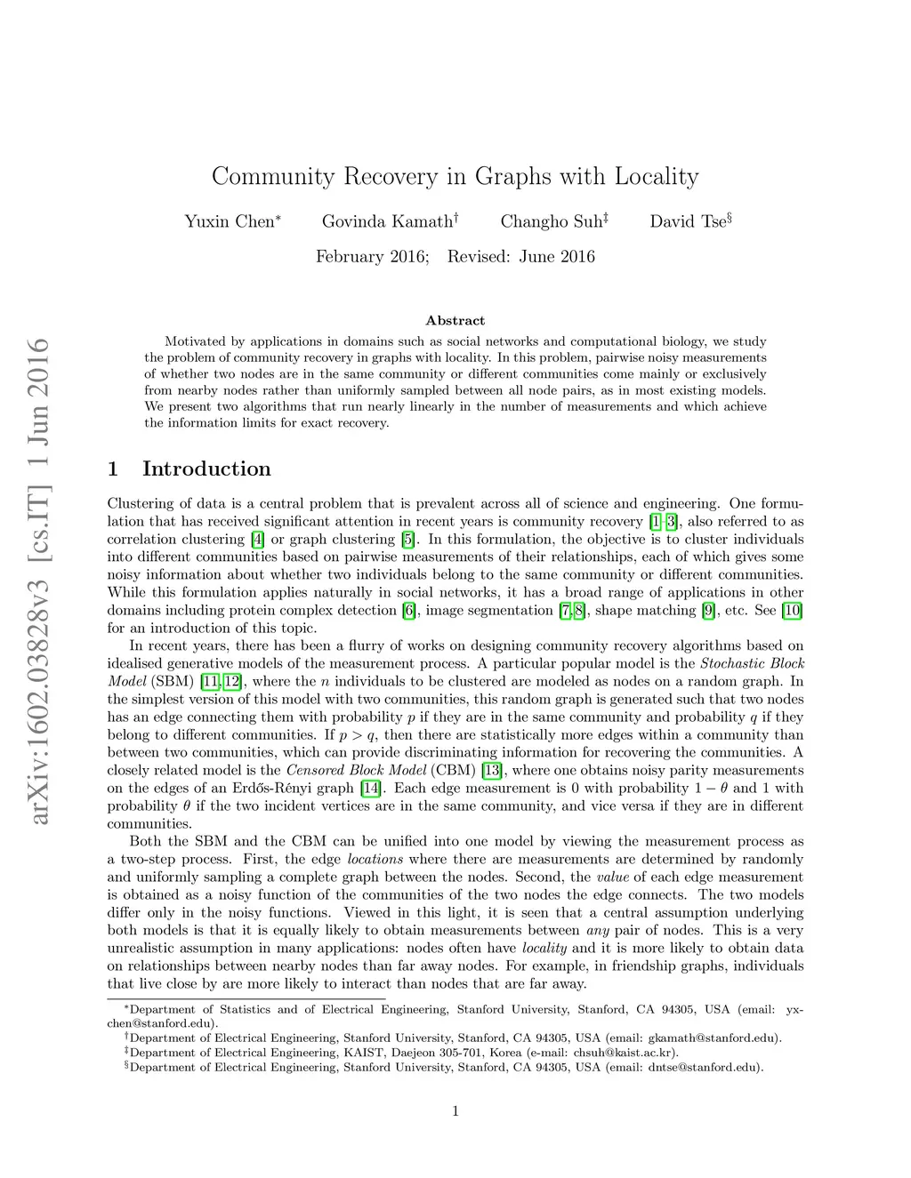 Motivated by applications in domains such as social networks and computational biology, we study the problem of community recovery in graphs with locality. In this problem, pairwise noisy measurements of whether two nodes are in the same community or different communities come mainly or exclusively from nearby nodes rather than uniformly sampled between all nodes pairs, as in most existing models. We present an algorithm that runs nearly linearly in the number of measurements and which achieves the information theoretic limit for exact recovery.