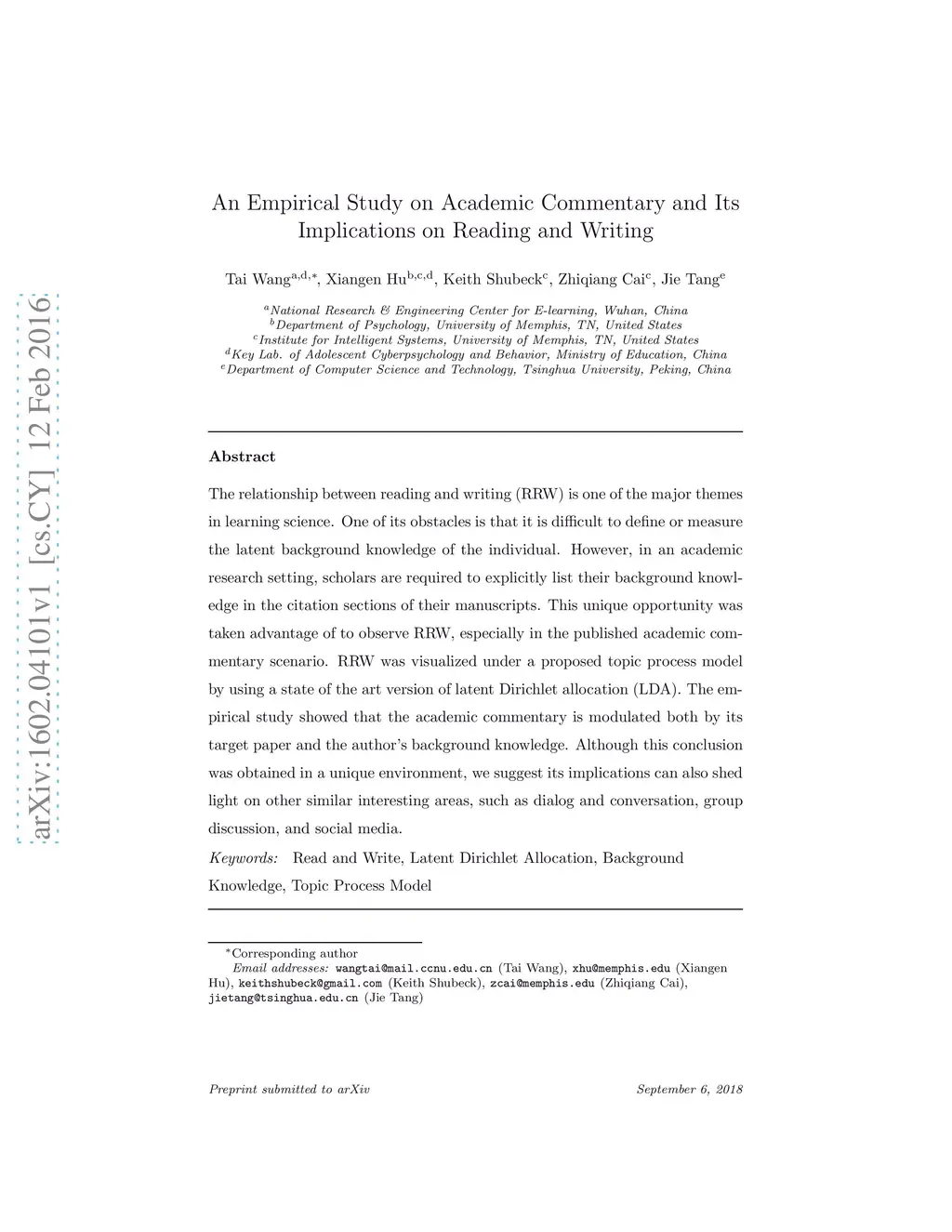 The relationship between reading and writing (RRW) is one of the major themes in learning science. One of its obstacles is that it is difficult to define or measure the latent background knowledge of the individual. However, in an academic research setting, scholars are required to explicitly list their background knowledge in the citation sections of their manuscripts. This unique opportunity was taken advantage of to observe RRW, especially in the published academic commentary scenario. RRW was visualized under a proposed topic process model by using a state of the art version of latent Dirichlet allocation (LDA). The empirical study showed that the academic commentary is modulated both by its target paper and the author's background knowledge. Although this conclusion was obtained in a unique environment, we suggest its implications can also shed light on other similar interesting areas, such as dialog and conversation, group discussion, and social media.