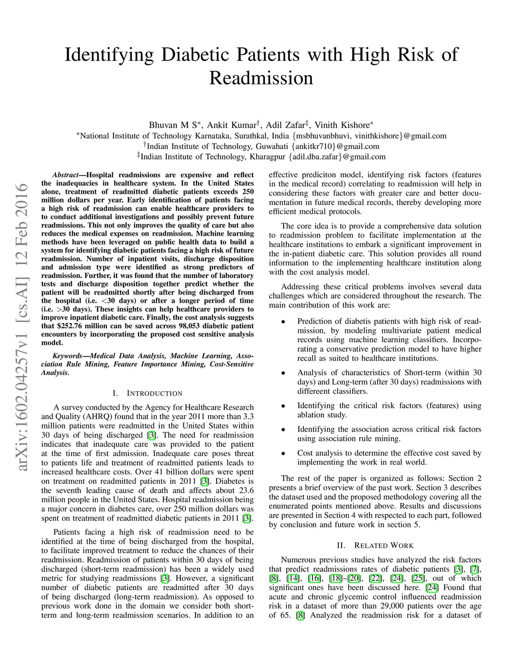 Identifying Diabetic Patients with High Risk of Readmission