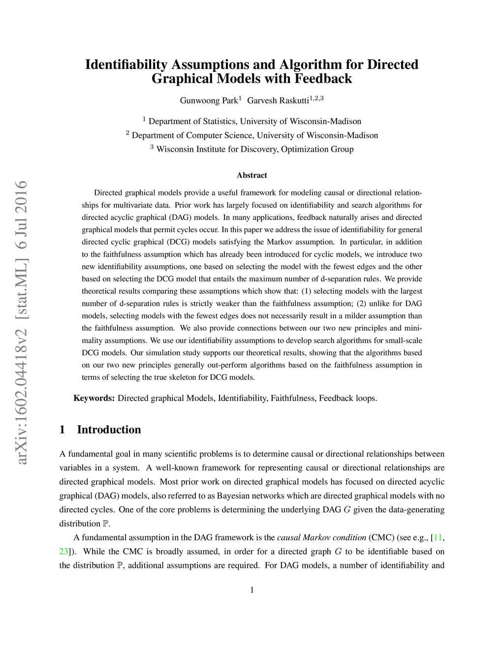 Identifiability Assumptions and Algorithm for Directed Graphical Models